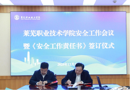 会议举行《安全工作责任书》签订仪式,杨洪涛与周美栋签订责任书,进一步压实校领导班子安全责任,推动构建横向到边、纵向到底、责任到人的全链条安全责任落实格局,为校园安全稳定工作提供坚实的制度保障。