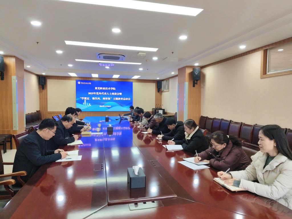 为进一步凝聚人心、汇聚力量,广泛听取党外人士意见建议,推动学校统战工作提质增效,近日,学校召开2025年度党外代表人士座谈会暨“学规定、强作风、树形象”主题教育总结会。学校党委副书记李允实出席会议,党委组织部(党委统战部)部长刘铖主持会议。学校各民主党派、无党派人士和知联会成员代表参加会议。