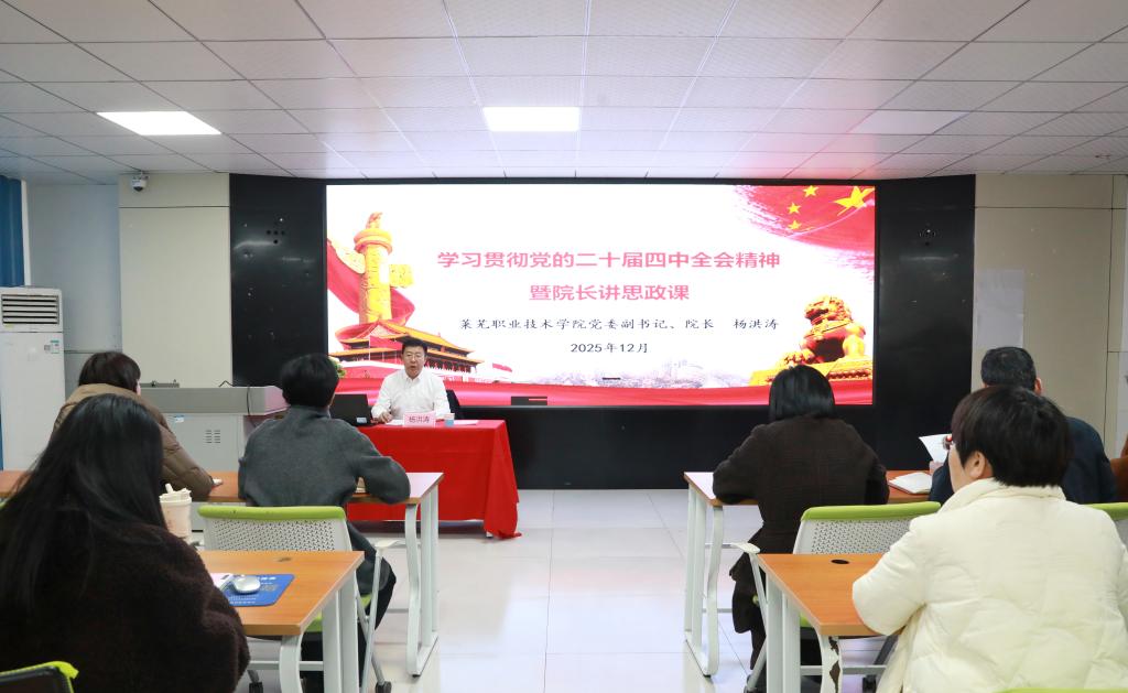 杨洪涛以《胸怀美好蓝图 规划美好人生——在中国式现代化征程中书写青春答卷》为题,将党的二十届四中全会精神与职业教育发展、青年成长成才深度融合,为师生们带来了一堂兼具理论高度与实践温度的思政课。他系统解读全会精神核心要义,深入阐释“十五五”规划战略部署与青年学子的紧密关联,引导大家将个人理想融入国家发展大局。他指出,全会明确将高技能人才纳入“国家战略人才力量”,提出发展新能源、新材料、低空经济等战略性新兴产业,实施“人工智能+”行动,这与人工智能系的专业定位高度契合,为学子们提供了广阔的施展舞台。依据人工智能专业特点,结合典型案例,说明高技能人才在技术落地中的不可替代性。课程最后,他围绕全会精神落地生根,对学子们提出四点明确期望:一是扎根专业练硬功,做“精准落地”的技术达人,把专业所学与产业需求紧密结合;二是对接需求明方向,做“紧跟时代”的追光者,将个人职业规划融入“十五五”发展蓝图;三是涵养品德筑根基,做“感恩·赶超”的莱职人,在协作中坚守诚信、传承美德;四是自信自强敢拼搏,做新时代的奋斗者,在服务国家战略中实现人生价值。