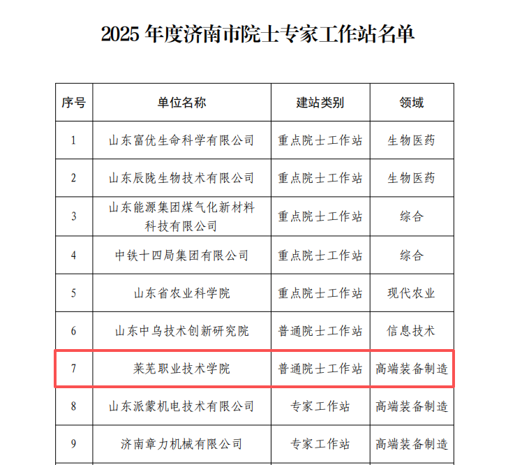 近日,济南市科学技术协会印发《关于公布2025年度济南市院士专家工作站、乡村振兴科技顾问工作站名单的通知》(济科协〔2025〕44号),根据人才政策“双30条”(2025版)、《济南市院士专家工作站管理办法》相关规定,经组织申报、资格审查、专家评审、综合论证等严格流程,学校申报的“阿布德拉伊莫夫院士工作站”成功获批济南市院士工作站,建站领域为高端装备制造,全市仅7家单位入选,也是迄今为止市属高校唯一获批建站单位。