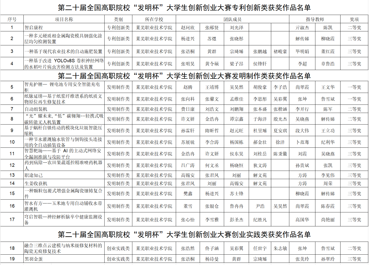 本次大赛中,学校共夺得一等奖2项、二等奖4项、三等奖13项,获奖总数位列市属高校首位、山东省第四位、全国第十位,实现了获奖数量与排名的双重突破。这一成绩不仅是对学校创新教育成果的有力印证,更彰显了我校学子在专利发明、技术创新领域的强劲实力。