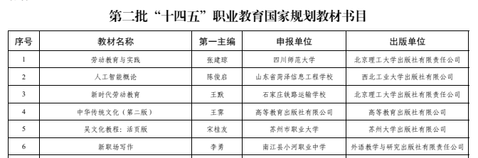 1月26日,教育部职业教育与成人教育司发布了《关于公布第二批“十四五”职业教育国家规划教材书目的公告》,学校4部教材成功入选,学校高水平教材建设再结硕果。