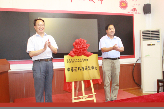 学院党委副书记毕玉海与紫光生态园有限公司总经理李奉胜共同为中草药科技研发中心揭牌