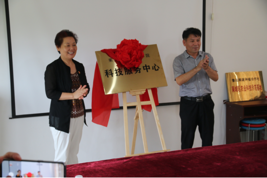 学院副院长邹翠兰与苗山镇党委副书记李传孝共同为科技服务中心揭牌