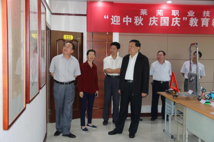 学院领导和老师们在展室认真驻足观看,一幅幅师生书画作品、一个个技能大赛获奖作品、一件件教师优秀教案,还有学生的实习实训及手工作品,无不展示着师生昂扬向上的精神状态和奋发有为的工作作风。