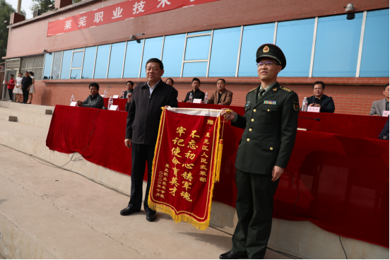 董海燕代表学院向承训单位莱芜区人民武装部赠送锦旗