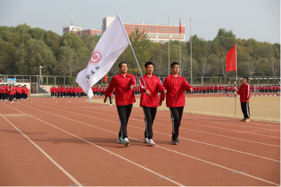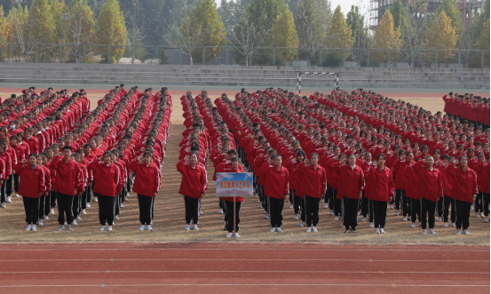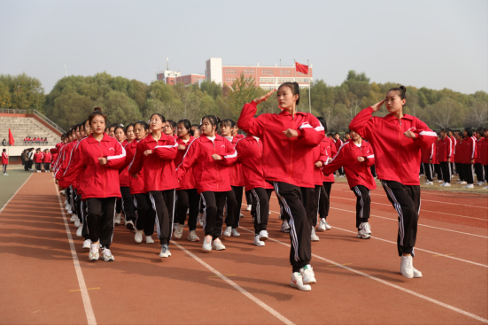 董海燕在致辞中代表学院党委、行政,向军训期间付出辛勤汗水的全体教官表示衷心的感谢,向敢于吃苦、顺利完成军训任务的全体同学表示热烈的祝贺。他表示,本次军训取得可喜可贺的成绩,离不开莱芜区人民武装部领导和全体教官的高度负责、严格要求和悉心指导,也离不开老师们的辛勤付出,充分展现了学院教师的奉献精神和崇高品格。他讲到,短短一周紧张而有序的军训让同学们迅速转变角色,振作精神,面对种种困难和挑战,同学们用出色的表现顺利完成了大学生活的第一课,交出了第一份合格的答卷。会操结束后,2020级新生在新生代表李景睿的带领下举起右臂,紧握拳头,集体庄严宣誓,铿锵有力的声音久久回荡在校园,彰显着莱职学子的热血、梦想和凌云壮志。