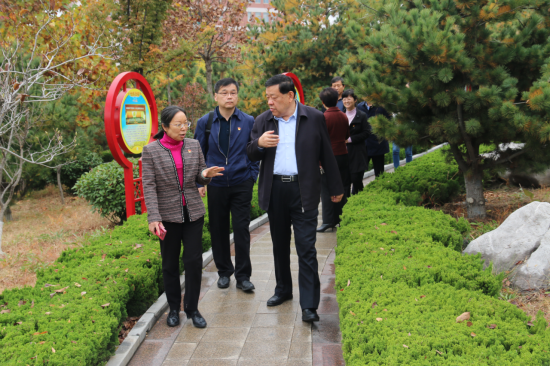 座谈结束后,调研组一行实地查看了党建文化长廊、机械工程实训中心、党建主题公园和初心馆。