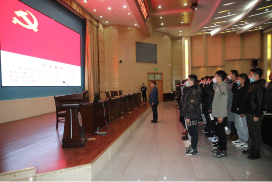 仪式上,织人事处处长贾友军宣读了学院党委2020年度接收预备党员批复。参加宣誓的预备党员面向党旗,举右手庄严宣誓。预备党员代表陈可心(经济管理系党总支)进行了表态发言。