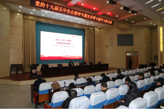 12月29日下午,学院党的十九届五中全会精神专题宣讲暨专题学习班开班在图信楼学术报告厅举行。学院党委书记、中共济南市委教育工委党的十九届五中全会精神宣讲团成员董海燕作专题宣讲。党委副书记毕玉海主持会议。学院领导班子及副科级以上干部、党支部书记、教研室主任、思政课专任教师、民主党派人士及各系学生代表参加学习。