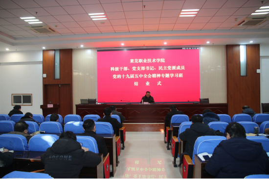 1月6日下午,学院举行科级干部、党支部书记、民主党派成员党的十九届五中全会精神专题学习班结业式。党委副书记毕玉海主持仪式并讲话,学员代表李传春、陈增吉、冯世超、孙铭军、高娟五位同志进作交流发言 。