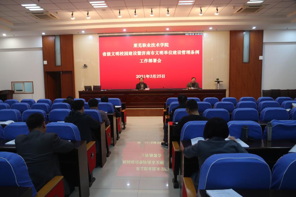 3月25日下午,学院召开2021年省级文明校园建设暨济南市文明单位建设管理条例部署会。党委副书记毕玉海主持会议并讲话,各处室、各系主要负责同志及分管文明创建工作的同志参加会议。
