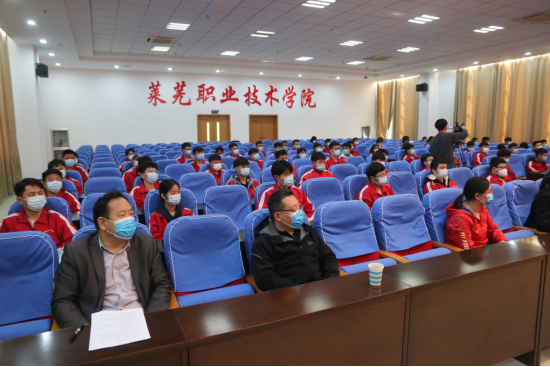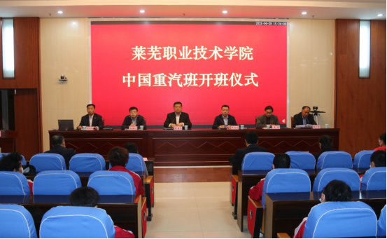 董海燕代表学院对“重汽班”的顺利开班表示祝贺,对中国重汽和莱芜区人社局、教育局各位领导前来参加仪式的各位嘉宾表示欢迎和感谢。他指出,学院坚持“服务济南、辐射周边,工科为主、多科并举”的办学定位,形成了“校企一体化办学,双主体多模式育人”的办学特色。中国重汽百万整车整机绿色智造产业城项目落户莱芜区,为双方展开合作提供了历史机遇。在莱芜区有关部门推动下,校企双方友好磋商,签订了校企合作协议,开启了正式合作。董海燕向“重汽班”全体学员提出了具体希望和要求。一是要努力学习。他希望同学们加倍珍惜这次难得的学习、实践机会,进一步明确学习目标,端正学习态度,刻苦学习,早日成为符合公司需求的高素质技术技能型人才。要认真学习专业知识,积极参加实践训练,虚心向授课教师和技术人员请教,增长知识,开阔眼界,提升素质,掌握技能,为将来到中国重汽集团高质量就业奠定坚实基础。二是要扎实工作。他希望同学们将来到企业之后,进一步增强主人翁意识,坚守工作岗位,自觉服从公司管理。继续发扬在校学习期间养成的好习惯、好品质,尊重领导,团结同事,爱岗敬业,乐于奉献,模范遵守公司的各项规章制度,时时处处注意自己的言行举止,自觉维护自身形象和学院的良好声誉。三是要心怀感恩,不断赶超。他希望同学们始终保持感恩之心,以感恩之心去学习、去工作、去生活,做到对学校和企业有感情,对学习有激情,对工作有热情,以实际行动回报家庭、学校、企业和社会。他希望同学们始终保持赶超之志,在事业上奋起直追、追求卓越,在平凡的岗位上做出不平凡的业绩。