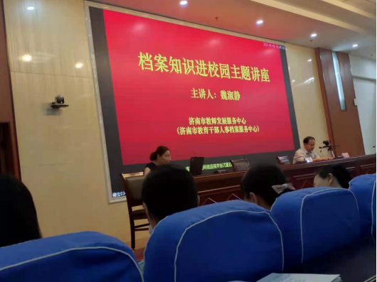 6月8日,济南市教育干部人事档案服务中心来学院进行档案知识进校园主题讲座。学院各系办公室副主任、学生科副科长、辅导员、班主任及学生代表等120人聆听讲座。