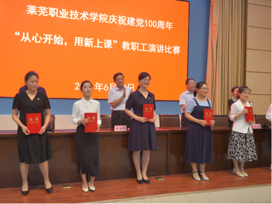 为展现我院在党史学习教育中的创新工作成就和良好精神面貌,引导全院教师勇担职责使命,焕发干事创业精气神,6月25日下午,学院在图信中心报告厅举行了庆祝建党100周年“从心开始,用新上课”教职工演讲比赛。同时,为在“讲好红色故事 传承红色基因”故事征集和视频大赛、“我的入党故事”征文中的获奖代表颁奖,并隆重表彰了优秀共产党员、优秀党务工作者和先进党支部。