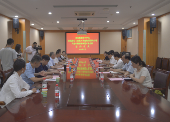 7月5日下午,学院与新优曼宁(山东)教育集团有限公司共建中德智能制造产业学院签约仪式在办公楼328会议室举行。济南市莱芜高新区管委会主任王喜东,济南市教育局总督学成刚,济南市教育局产业发展处(高校联络服务处)处长王志国,济南市教育局职业与高等教育处副处长、三级调研员吕正平,新优曼宁(山东)教育集团有限公司董事长李勇,新优曼宁(山东)教育集团有限公司总经理meining曼宁(德),学院党委书记董海燕,学院副院长邹翠兰等领导出席,签约双方代表及学院相关处室工作人员和专业教师参加仪式。