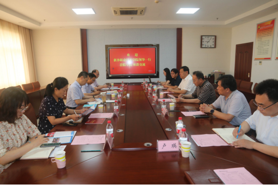 7月8日上午,新乡职业技术学院党委书记张林,党委副书记、副院长杨剑虹等领导来我院考察交流。党委书记董海燕、党委副书记毕玉海出席座谈会,教务处、计财处等部门负责人及相关专业群带头人参加座谈交流。