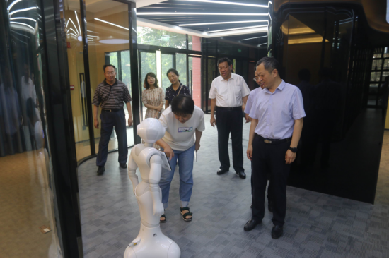 座谈结束后,客人一行实地参观了学院机械工程实训中心、人工智能实训中心和明德园。