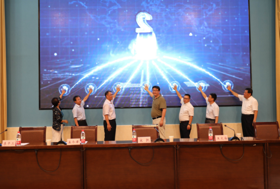 8:54主席台就坐的领导们移步屏幕前,共同启动东南亚职业教育境外办学联盟。