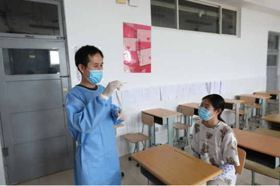 本次演练在学院大门口和各系教学楼举行,分别对返校期间师生员工的身份核验、体温监测、信息登记、秩序维护、应急处置等进校工作和教学楼内出现疑似病例后的应急处置进行了模拟演练。在返校报到模拟演练中,模拟人员从入校通道经身份核验、体温测验后入校。在测温过程中,发现体温异常学生后,工作人员及时封闭体温监测区进行消毒处理,并将体温异常人员引领至临时留观点,做好消毒防护的同时联系医护人员接诊,随后做好现场消毒等工作。在上课时自感异常情况应急处置演练中,接到疑似病例通知后,相关系部迅速协调各专项工作组启动应急处置,对教学楼实行封闭管理,立即组织开展信息摸排、隔离管理、教室消毒、心理辅导等,各专项工作组协同配合、行动有效、处置有力。
