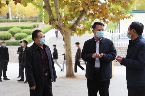 党委副书记、院长孔祥敏在宿舍区认真听取学生宿舍新冠肺炎疫情防控情况介绍