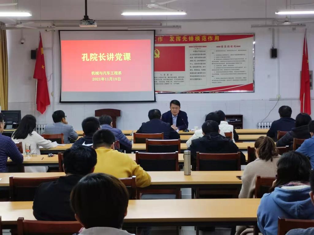 11月18日下午,学院党委副书记、院长孔祥敏到机械与汽车工程系,给教师党员和学生党员上了一堂题为《从百年党史中汲取奋进力量推动学校事业高质量发展》的党课。