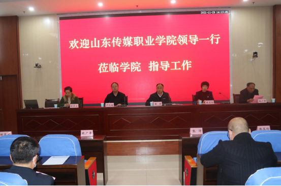 11月29日下午,山东传媒职业学院副院长张涛,副院长韩玉玲,院长助理尹纪瑜等来学院调研。学院副院长魏广舜,副院长邹翠兰出席座谈,相关处室、系负责人参加座谈。