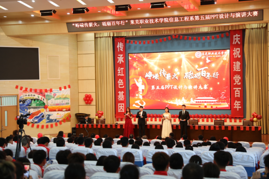 为庆祝中国共产党成立100周年,回顾建党百年来的风雨征程,引领青年学子学党史、铭党恩,传承红色基因。学院信息工程系于11月30日下午在图信中心举办“峥嵘传薪火,砥砺百年行”第五届ppt设计与演讲大赛。学院党委副书记毕玉海、美和易思山东区域运营总监王世鹏出席活动并为获奖选手颁奖。学生处、教务处、信息工程系等部门和单位主要负责人,信息工程系互联网+特色专业(与美和易思校企共建)2021级300余新生及教师现场观摩比赛。