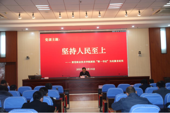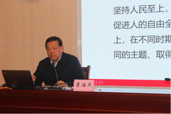 12月16日下午,学院党委书记董海燕讲授《坚持人民至上:百年伟大奋斗的宝贵经验》专题党课。学院领导、副科级以上干部、各党支部书记、学院派出驻村第一书记等参加学习。
