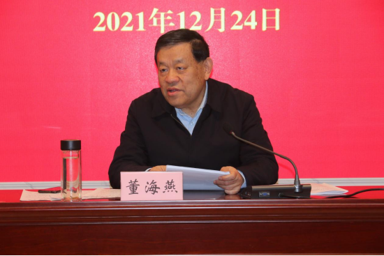 董海燕指出,十九届六中全会是在我们党成立一百周年的重要历史时刻,在党和人民胜利实现第一个百年奋斗目标,全面建成小康社会,正在向着全面建成社会主义现代化强国的第二个百年奋斗目标迈进的重大历史关头召开的。他重点阐述了《中共中央关于党的百年奋斗重大成就和历史经验的决议》(以下简称《决议》)的丰富内涵和核心要义:一要深刻认识总结党的百年奋斗重大成就和历史经验的重大意义;二要深刻认识党的百年奋斗的初心使命和重大成就;三要深刻认识中国特色社会主义新时代的历史性成就和历史性变革,并结合《决议》从13个方面领域对党的十八大以来党治国理政采取的重大方略、重大工作、重大举措进行了系统阐述;四要深刻认识党的百年奋斗的历史意义和历史经验,他指出《决议》从5个方面总结了党百年奋斗的历史意义,积累了10个方面的宝贵经验;五要深刻认识以史为鉴、开创未来的重要要求;六要从党的百年奋斗历程中汲取智慧和力量。