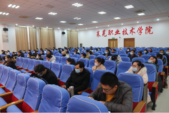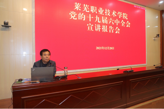 12月28日下午,学院召开党的十九届六中全会精神宣讲报告会。思政部主任郝金镇作题为《数字把握党的十九届六中全会历史决议》的宣讲报告,各处室、各系教师代表,商务管理系师生代表认真聆听了报告。