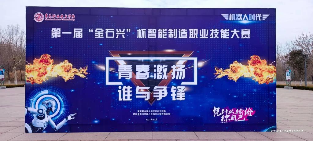 2021年12月28日—29日,第一届“金石兴杯”智能制造职业技能大赛在学院机电工程系举行。副院长邹翠兰,机电工程系、武汉金石兴相关负责人以及裁判长、指导教师、参赛选手等参加活动。