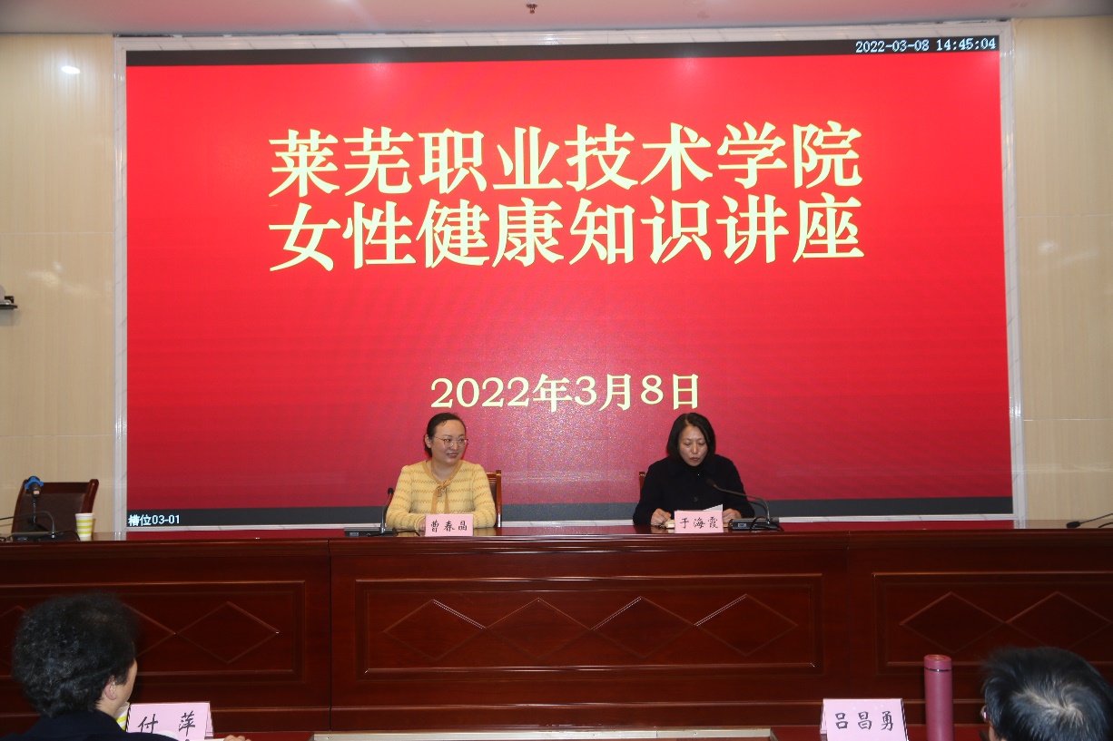 3月8日下午,学院工会组织举办了女性健康知识讲座。讲座前,学院党委副书记毕玉海、纪委书记付萍分别同市第二妇幼保健院党委书记吕昌勇、副院长侯学涛、主治医师曹春晶、公益宣传队副队长亓惠、公益宣讲队副队长李鸿飞进行了座谈交流。学院工会副主席于海霞主持讲座,来自各处室、系的广大女教职工代表近百人聆听讲座。曹春晶、亓惠用丰富的专业知识和实践经验,就女性常见疾病及预防、门诊统筹等问题进行了讲解。本次讲座增强了学院女教职工的健康意识,提高了女教职工的自我保健水平。