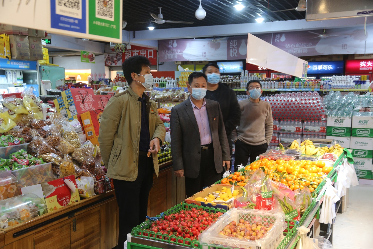 在超市,李允实一行重点检查了超市各类生活用品的供应情况,详细询问商品进货渠道及价格,向前来购物的同学了解物价是否存在波动、物品供应是否充足等情况,并就落实学院疫情防控工作提出相关要求。他指出,超市是当前人员最密集的场所之一,一定要严之又严、细之又细,高标准做好安全防护工作;要严格把控商品质量和价格,明码标价,保持价格稳定;要做好生活物资的储备,保证货源充足、供应稳定。
