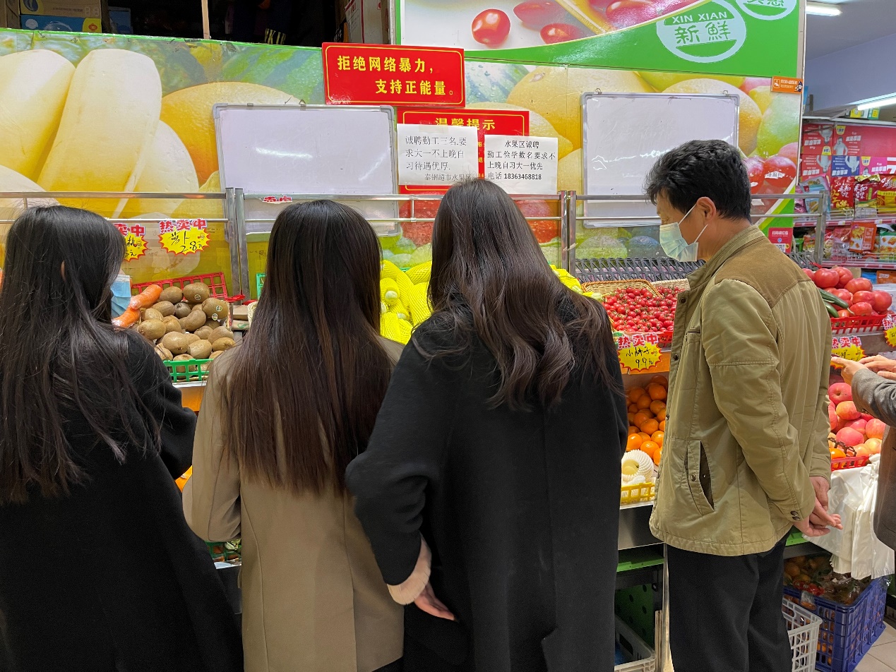 学院领导在超市检查物资供应并听取同学们意见