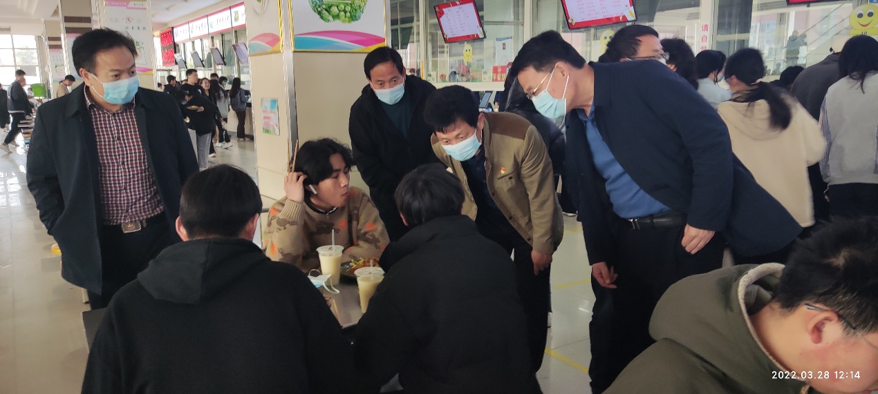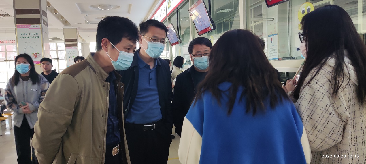 3月28日,学院党委副书记、院长孔祥敏,副院长李允实一行深入校园食堂、超市,了解学生诉求,倾听学生意见和建议,现场协调推进疫情防控工作。党政办公室、党委宣传部、总务处负责同志陪同调研。