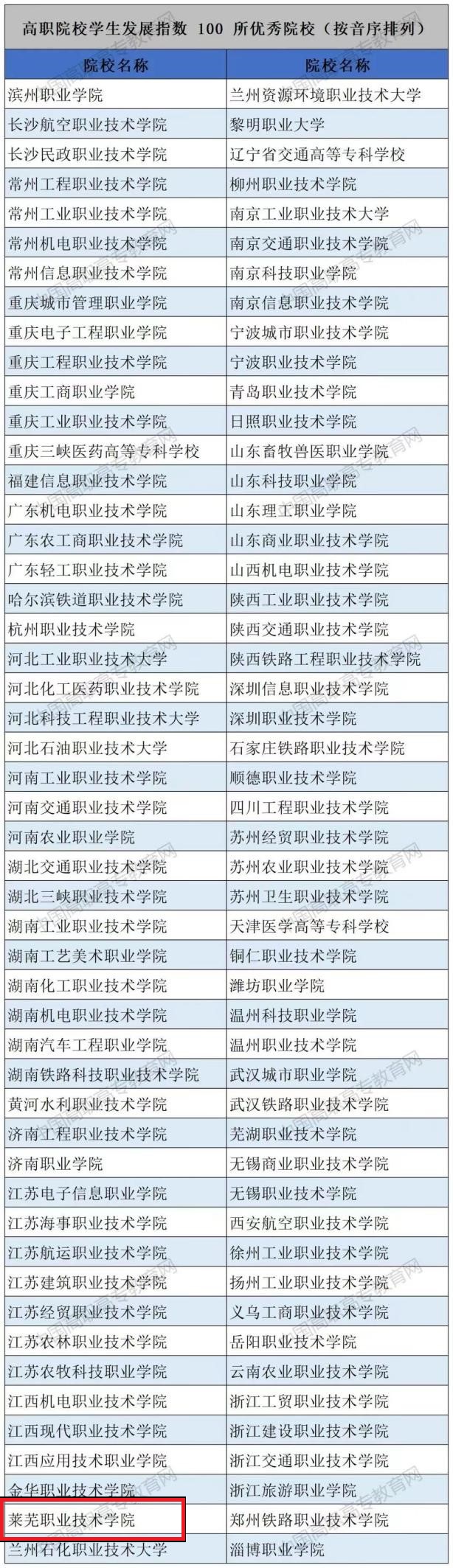 近日,由中国教育科学研究院、全国职业高等院校校长联席会议编制的《2021中国职业教育质量年度报告》(以下简称“报告”)已由高等教育出版社出版,报告首次发布了全国高职院校学生发展指数,遴选出100所高职院校学生发展指数优秀院校,学院成功入选。