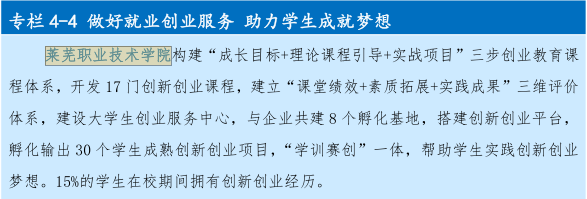 近日,山东省高等职业教育质量年度报告(2022)(以下简称“年报”)发布,全省共遴选出18个案例,学院1个案例入选《专栏 4-4 做好就业创业服务 助力学生成就梦想》。