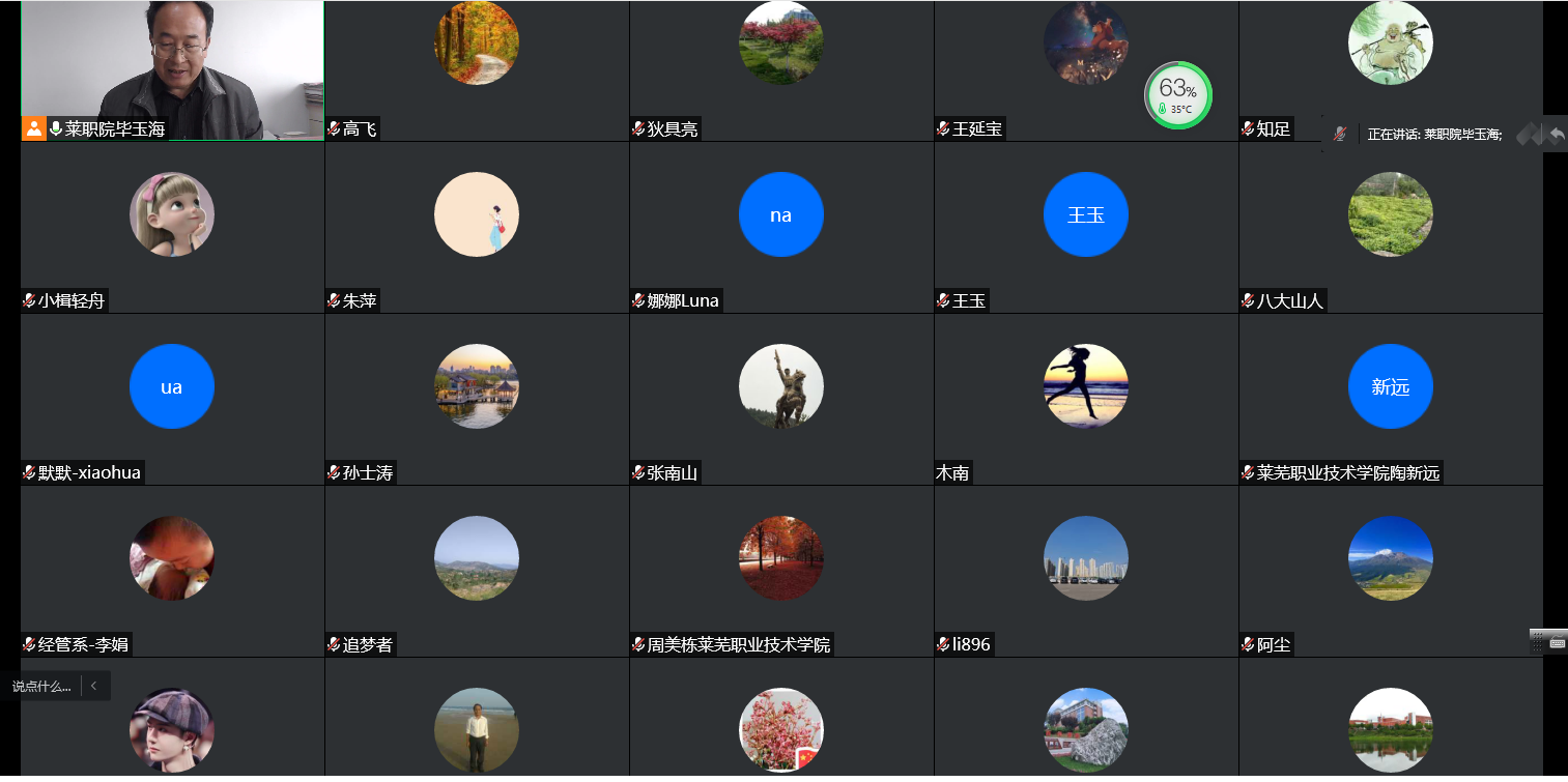 4月29日下午,学院党委副书记毕玉海以腾讯会议形式线上讲授“学习领会好市第十二次党代会精神 在现代化强省会建设中贡献力量”专题党课。党政办公室、党委组织部(党委统战部)、党委宣传部、机关党委、思想政治理论课教学研究部、工会、妇委会、经济管理系全体党员认真聆听了党课。