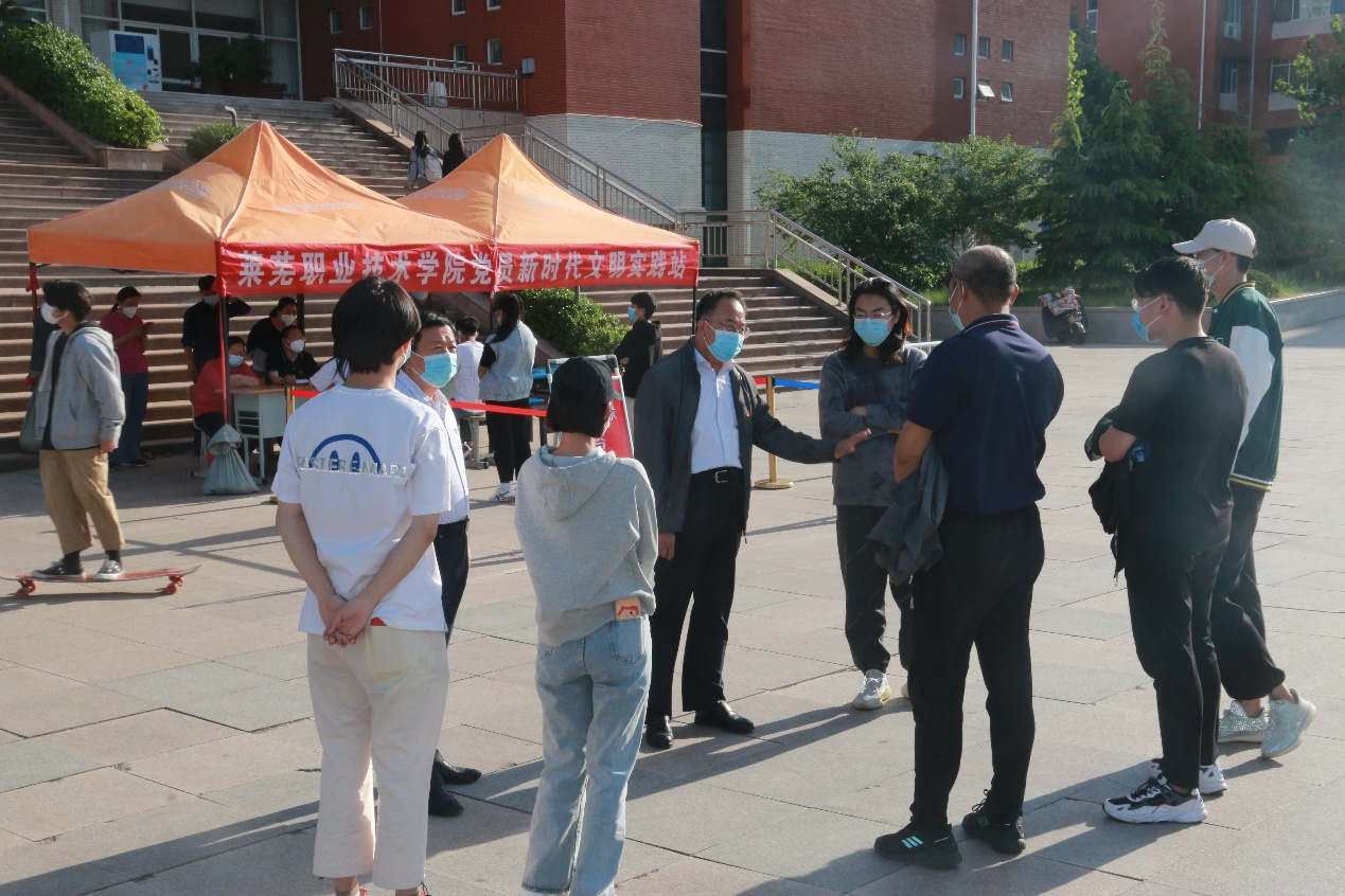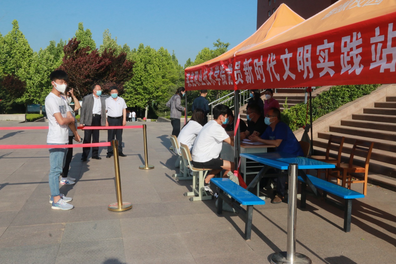 5月5日下午,党委组织部、党委教师工作部、机关党委、安全保卫处的党员同志参加了“党员新时代文明实践站”现场值班活动,现场为同学们答疑解难,解决实际困难,并将相关困难进行了登记记录。学院党委副书记毕玉海、党委组织部部长贾友军来到现场与同学们悉心交谈,倾听同学们的心声与诉求。