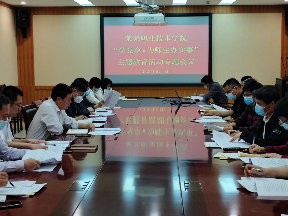 5月5日上午,学院召开 “学党章·办实事”主题教育工作会议,党政办公室、党委组织部(党委统战部)、党委学生工作部、总务处、安全保卫处、各基层党支部负责同志参加会议。