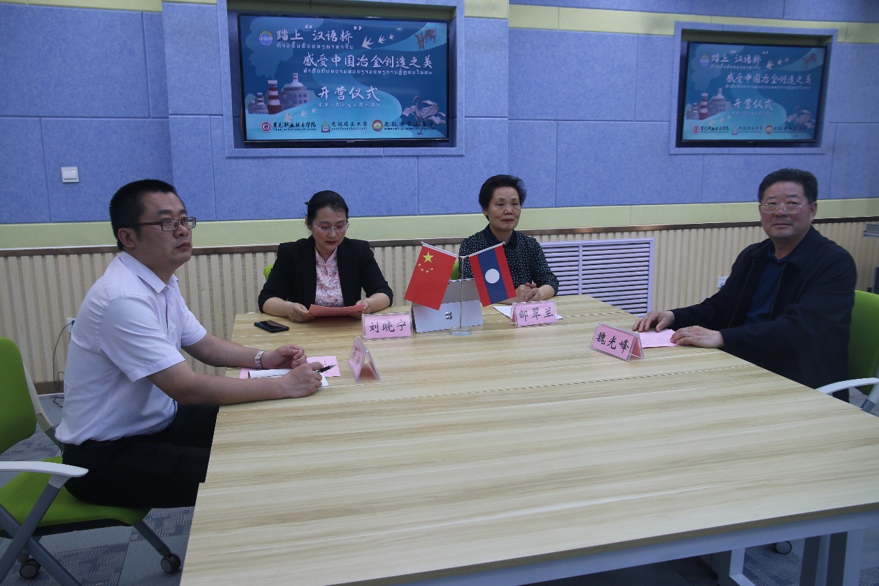 邹翠兰向老挝国立大学、老挝国家工商会表达了感谢,介绍了学院对外交流合作的情况和在“中文+职业技能”培训方面所做的积极探索和实践,勉励学员们努力学习,了解中国冶金的历史和现代冶金工艺,增进对中国文化和技术发展的理解,助力双方交流互鉴,也诚挚的邀请同学们来华访学交流。