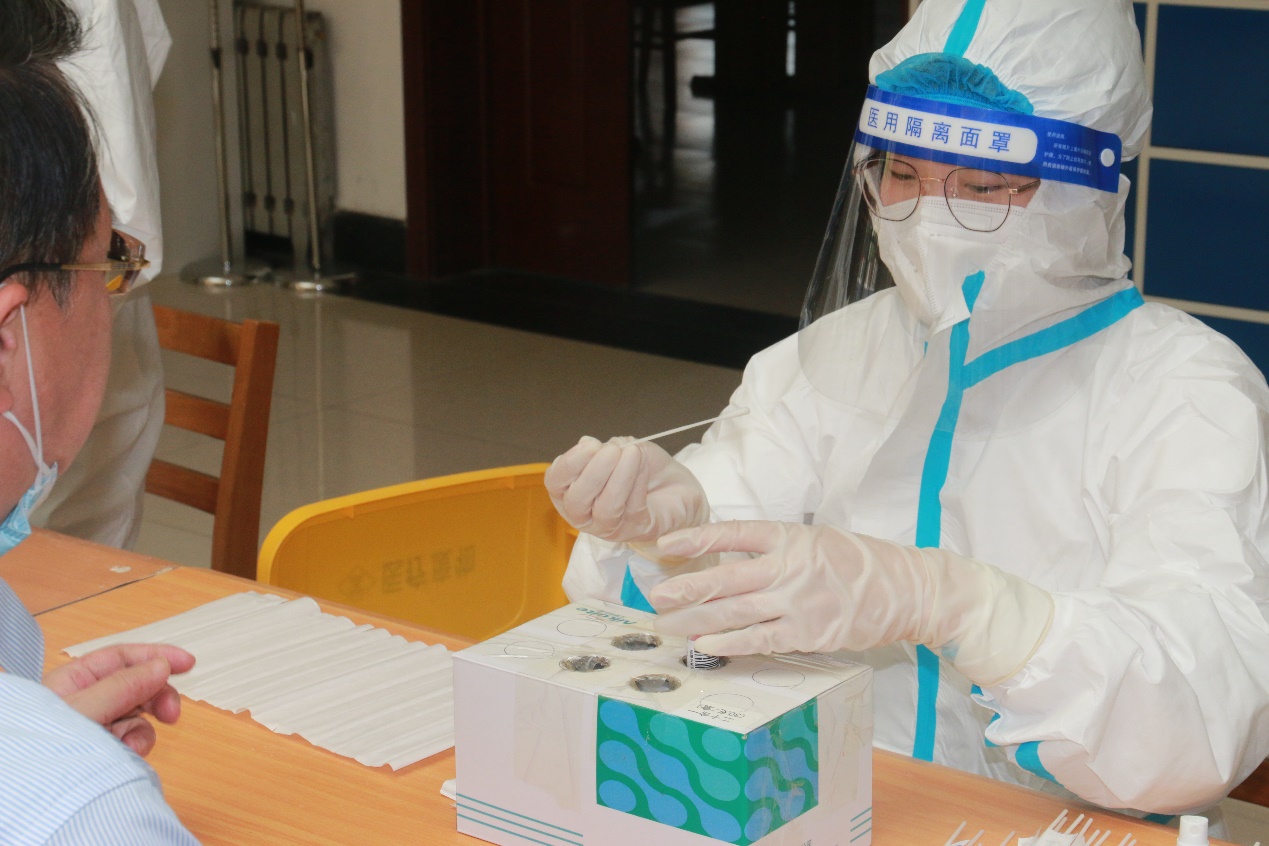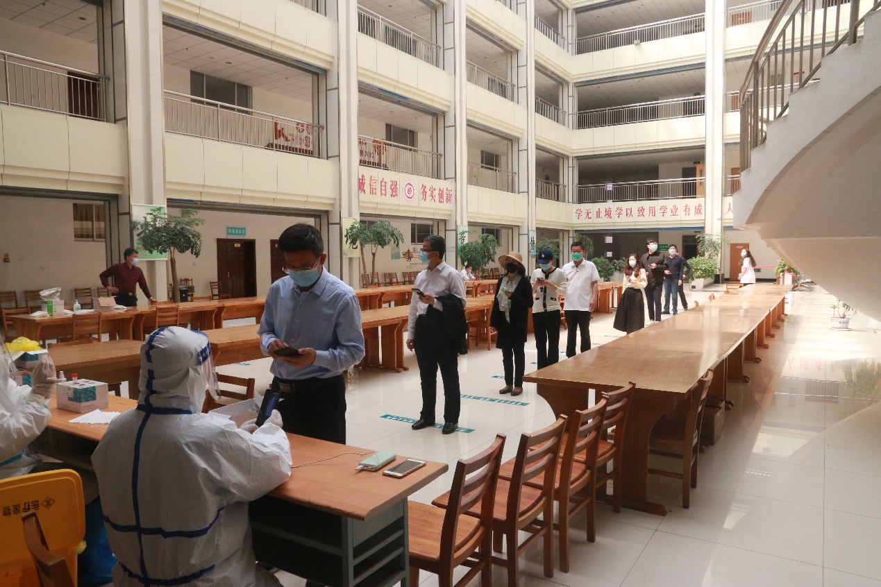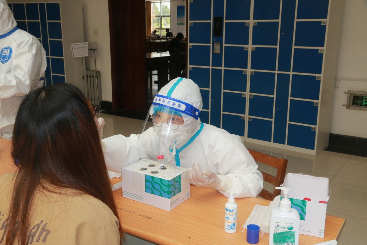 疫情就是命令,防控就是责任,安全重于泰山,抽调到的全体同志没有犹豫,更没有退却,而是闻令而动,迎难而上,以冲锋者的姿态站在疫情防控核酸检测最前线。教职工核酸检测每天都要进行,为此,检测组的同志基本全部住校值守,家中出现一些急需处理的问题,也都是让家人自行处理,没有人轻易离开。承担核酸检测任务只是检测组同志们工作的一部分,大家同时还要承担线上教学、学生管理或其他辅助服务工作,多个担子压在肩上,没有人讲理由、提条件,而是妥善安排,将核酸检测作为第一位工作全身心投入。