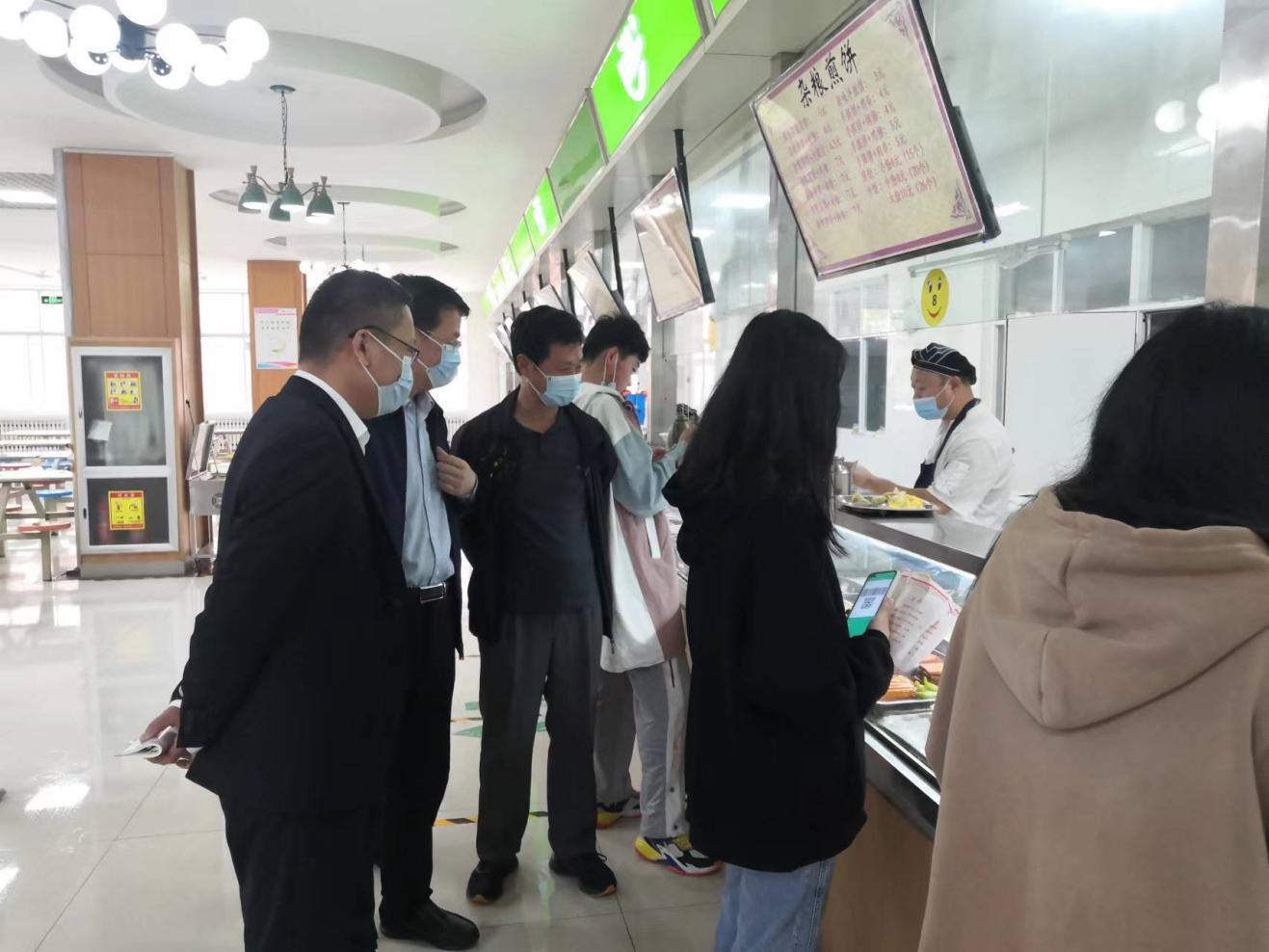 孔祥敏一行实地查看了学院餐厅、超市等疫情防控工作,了解工作人员的工作、生活等情况,叮嘱大家做好自身防护,劳逸结合,全力以赴做好各项服务,为住校师生提供充足保障。