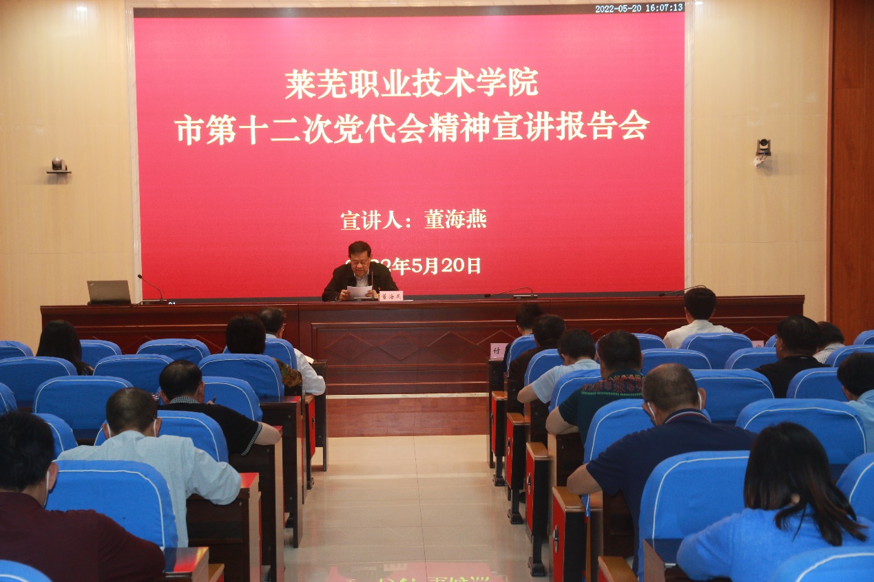 为引导广大党员干部统一思想,凝聚共识,增强动力,以责无旁贷的担当、坚定决绝的行动全面贯彻落实市第十二次党代会各项部署,5月20日下午,市第十二次党代会精神市委教育工委宣讲团成员、学院党委书记董海燕专题宣讲市第十二次党代会精神。各处室、系、部、中心负责同志和党员代表参加宣讲。