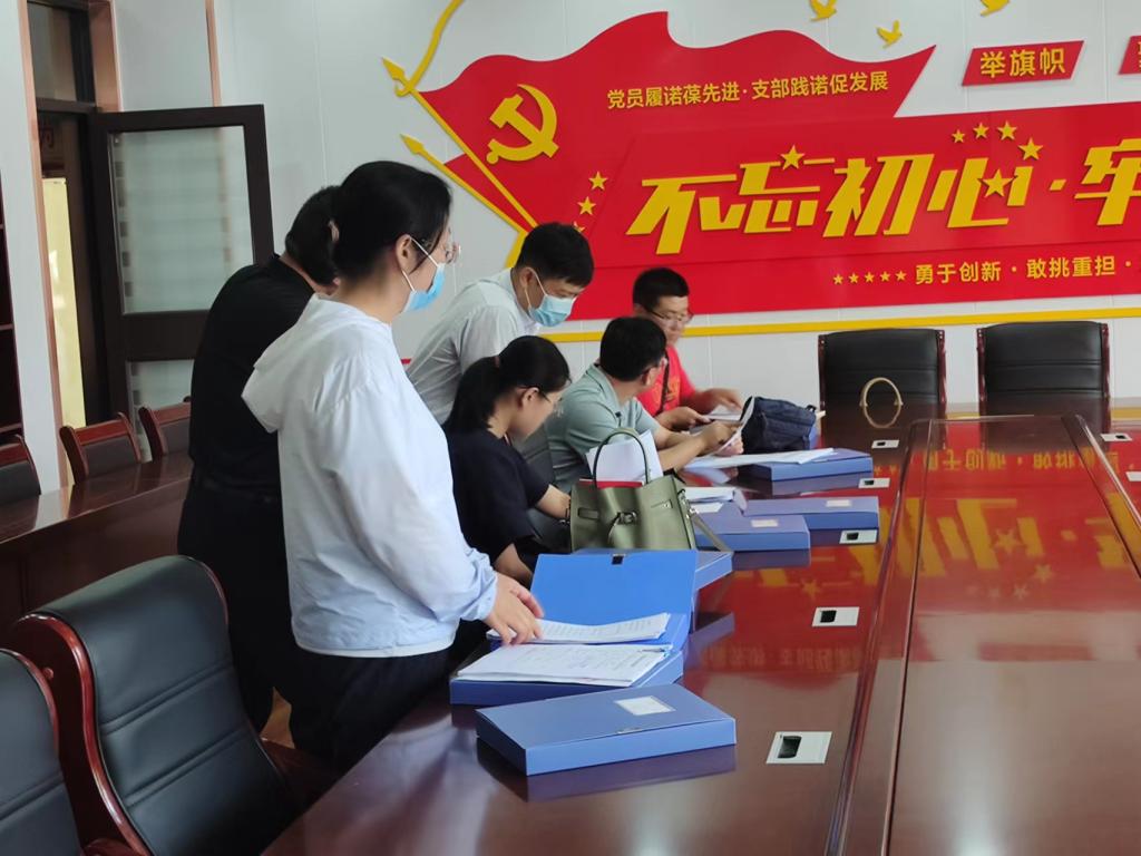 检查组在各单位自查的基础上,对照基础工作档案评比打分标准,采用现场查看档案、座谈交流等方式,对学校24个基层党支部2022年的基础工作档案进行现场打分,同时就检查中发现的问题进行业务指导,限期整改。