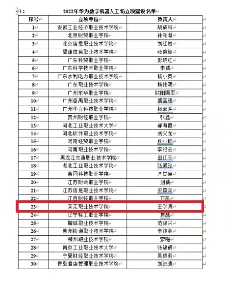 2022年华为数字机器人(RPA+AI)人才培养项目于6月22日在现代高等职业技术教育网(原中国高职高专教育网)公示立项建设名单,由学校信息工程系牵头申报的华为数字机器人工坊项目成功入选。