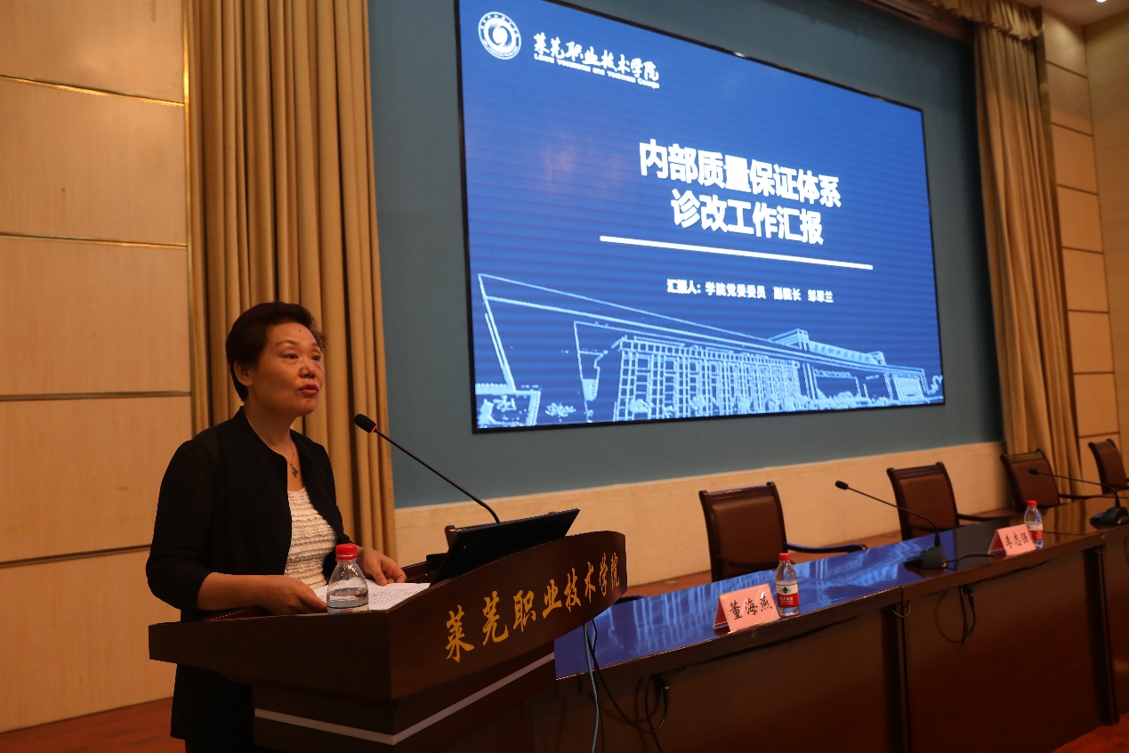 副院长邹翠兰,党委教师工作部部长王志强,党委学生工作部副部长董振华,图书信息中心副主任周冰,专业负责人孟凌春,课程负责人吴修文、李莹进行现场汇报。