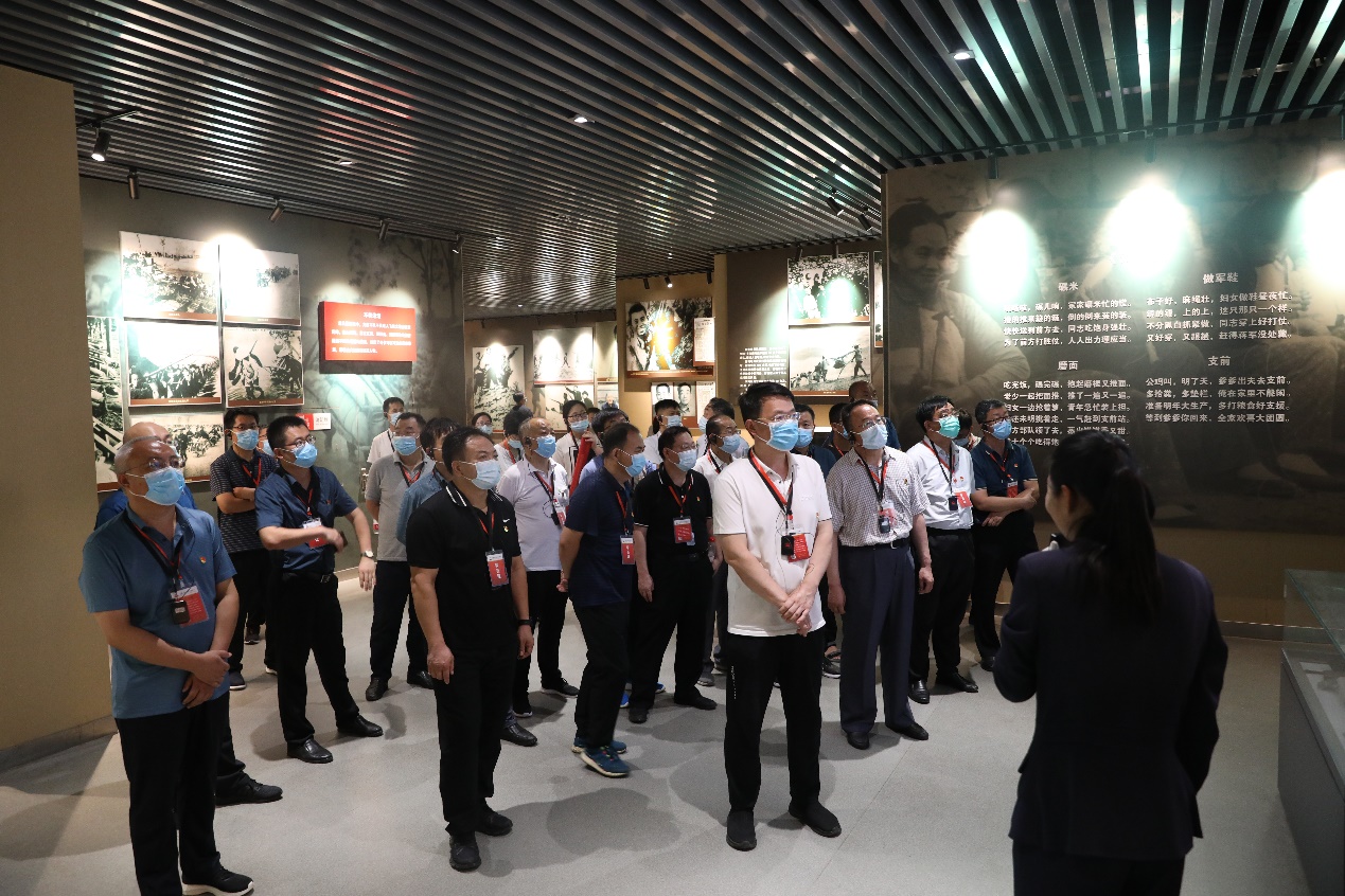在孟良崮战疫纪念馆,参训党员干部们认真学习了1947年5月华东野战军在陈毅、粟裕的指挥下,经过浴血奋战于孟良崮一举歼灭国民党精锐部队整编七十四师及援军一部,扭转了华东乃至全国的战局的史实资料,通过一张张图片、一件件实物、一个个历史事件,感悟初心使命,体会家国情怀。学员代表在粟裕将军墓前敬献花篮,寄托对革命先烈的无限哀思和崇高敬意。在庄严的党旗下,重温入党誓词,用铿锵的入党誓词表达对先烈的追思和对信仰的坚定。