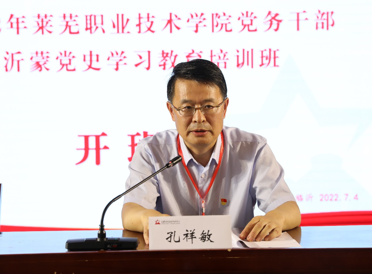 孔祥敏在开班式讲话中指出,沂蒙精神“水乳交融、生死与共”的特质,生动诠释了党和人民生死相依的血肉联系,蕴含着共产党人一脉相承的红色基因和始终不渝的初心使命,是开展党性教育和红色培训最直接、最生动的教材。为更好地学习、研究、传承、弘扬沂蒙精神,汲取砥砺奋进的精神力量,推动学校高质量发展,他对全体参训党员干部提出三点要求:一要统一思想,提高认识,充分认识培训的重要意义;二要加强理论学习,筑牢信仰之基;三是要知行合一,在工作实践中弘扬沂蒙精神。他强调,必须从更高的层面、更宽的领域来认识和把握沂蒙精神,把传承弘扬沂蒙精神与持续改进工作作风紧密联系起来,努力探索新时代党群干群关系,重塑“水乳交融、生死与共”的鱼水深情,力争各项工作取得新的更大成效,提升学校的综合办学实力,在“勇当‘三个走在前’排头兵,开创新时代社会主义现代化强省会建设新局面”进程中奋楫争先、积极作为。
